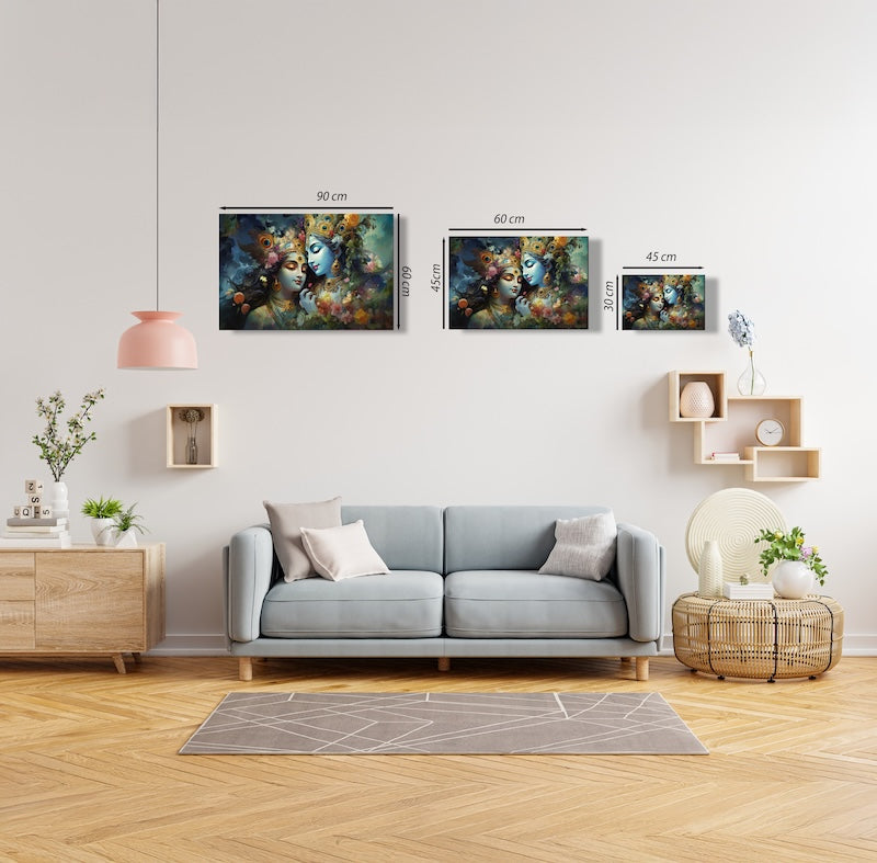 Celebrate the divine love and spiritual harmony of Radha and Krishna with this high-quality canvas wall art. Depicting the timeless bond between Lord Krishna and Radha, this sacred artwork brings peace, serenity, and spiritual connection into your space.