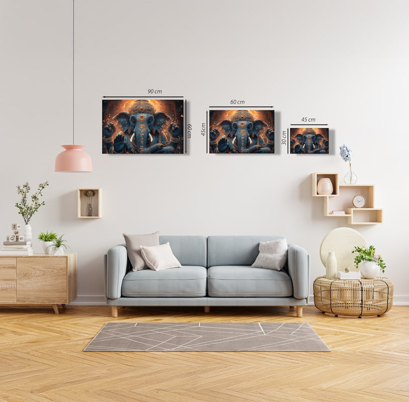 Lord Ganesha Canvas Wall Art – Hindu Spiritual Home Decor Deep Green