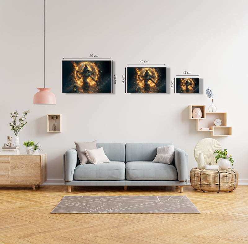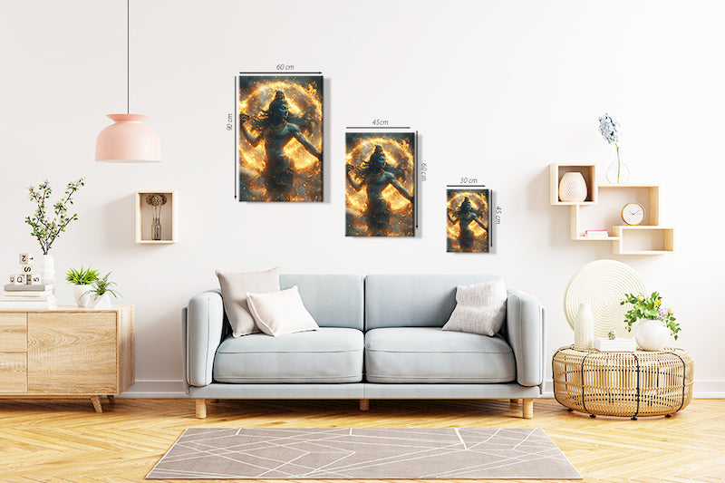Crafted with vibrant colors and detailed artistry, the canvas radiates peace and inner strength. Whether depicted in meditation, performing the Tandava dance, or as Neelkanth, Lord Shiva’s form brings clarity, calm, and spiritual protection to your surroundings.